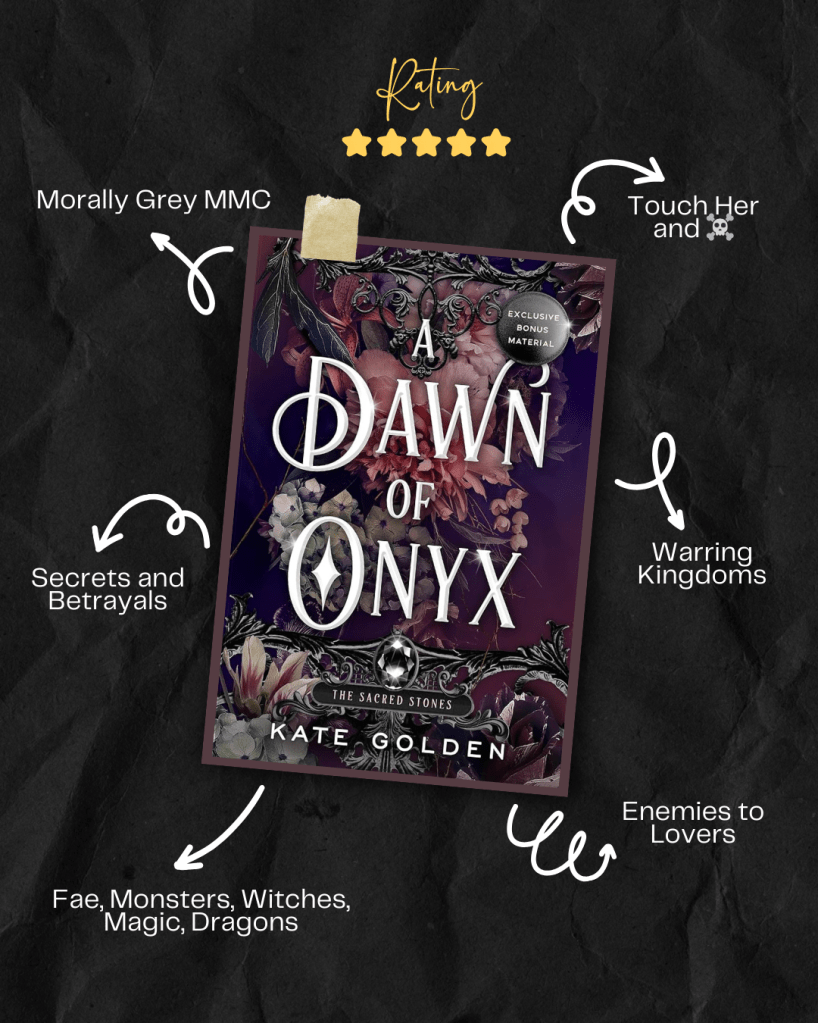Wow, Kate! What an introduction to our Shaddy Kane & Stabby FMC Arwen! I’ma big fan of world building and a little more of a complex set and setting and Dawn of Onyx did not disappoint. I love the reference to the stones, and Arwens love of flowers. (Reminds me of afternoons in my grandmother’s garden). The twists and turns towards the end of the book had me blazing through the last 10 chapters SO FAST.