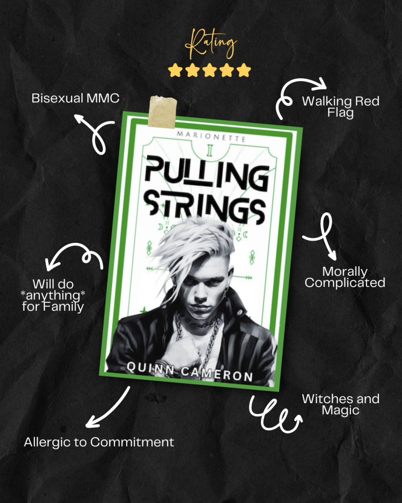 I’m not going to lie that I’ve DNF’d a couple ARCs this year already… it was such a sad and heartbreaking process and I was almost ready to take a break from the ARC reading for a bit… but ALONG CAME PULLING STRINGS BY QUINN CAMERON AND WOOOOOOOOW. Faith in ARC reading RESTORED. Fitch Farrow is the bad-boy-murder-bisexual-sarcastic-ass-witch-bestie I never knew I needed.
